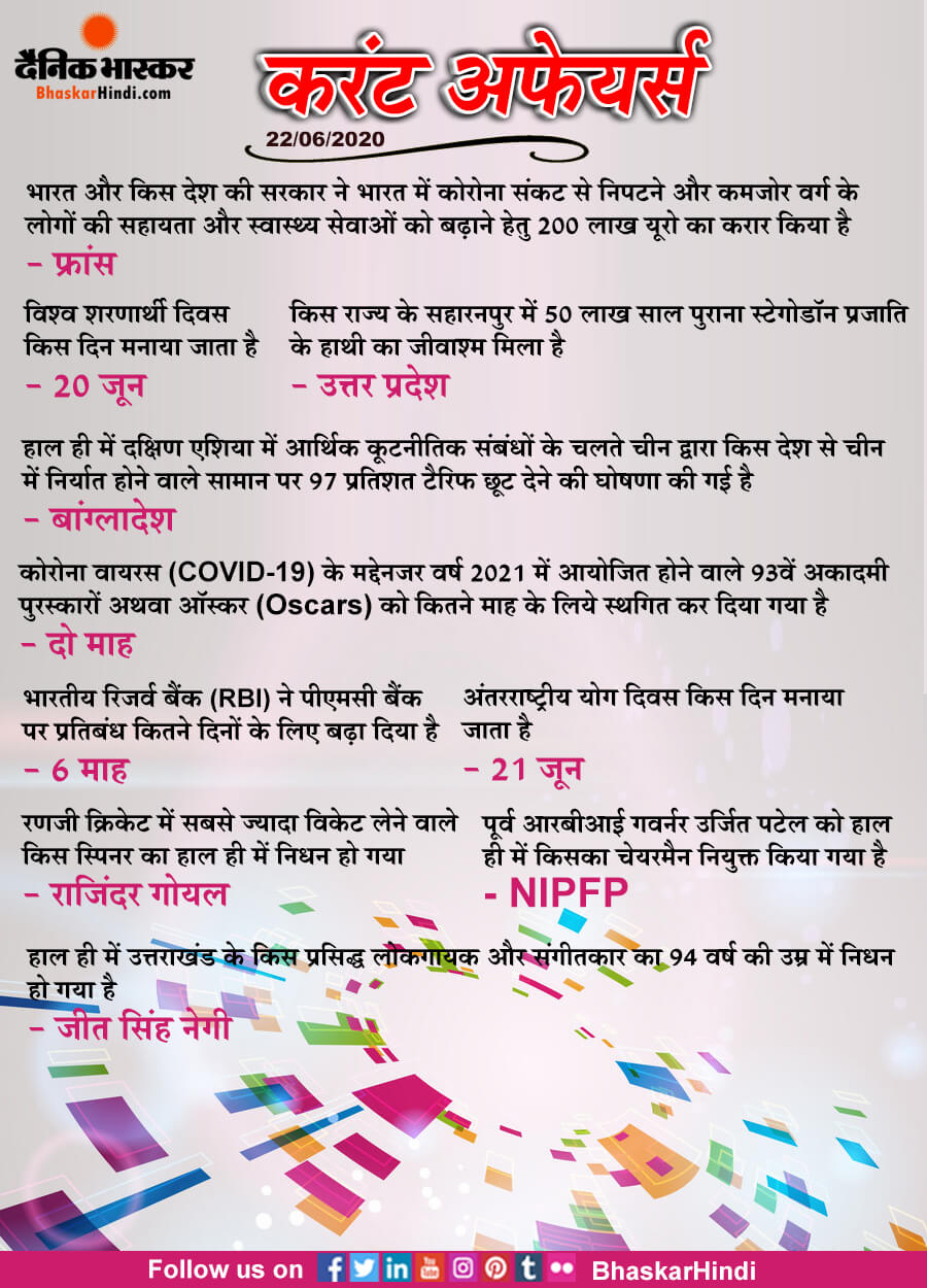Dainik bhaskar 22-06-2020 Current Affairs