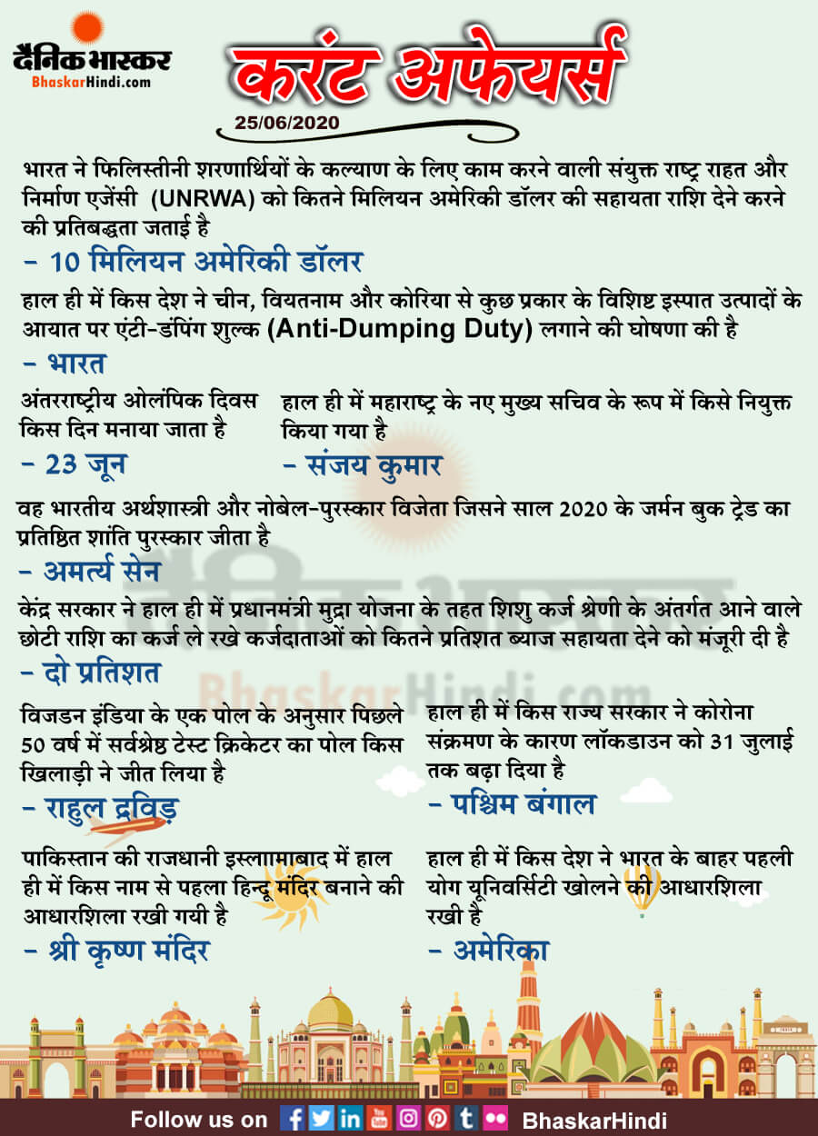 Dainik bhaskar 25-06-2020 Current Affairs
