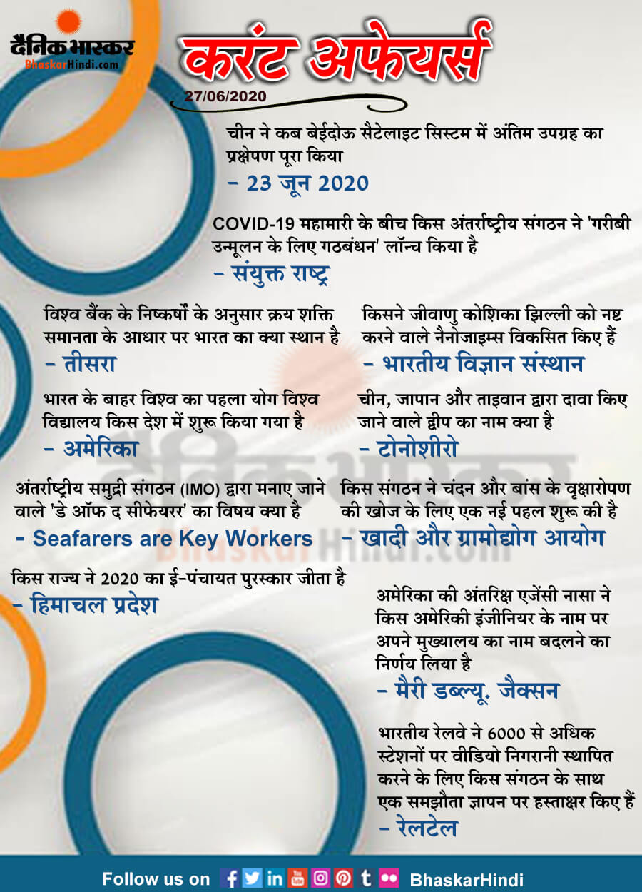 Dainik bhaskar 27-06-2020 Current Affairs