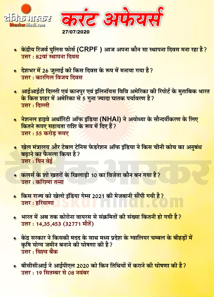 Dainik bhaskar 27-07-2020 Current Affairs
